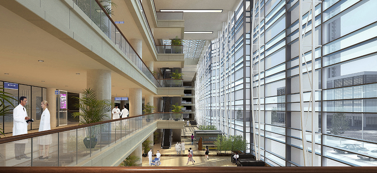 北海人民醫(yī)院設(shè)計(jì)將“以人為本,管理便捷;衛(wèi)生安全,運(yùn)行高效;節(jié)能環(huán)保,綠色生態(tài)”的概念,貫穿整個(gè)設(shè)計(jì)過程,強(qiáng)調(diào)對(duì)環(huán)境的尊重,包括院區(qū)所在的大環(huán)境及院區(qū)內(nèi)部的小環(huán)境。通過深入的調(diào)查與分析,力爭(zhēng)使整個(gè)建筑群與自然環(huán)境和景觀和諧相處,病人在這樣的環(huán)境中能夠看到綠樹、藍(lán)天,呼吸到新鮮的空氣,激發(fā)其對(duì)生命的渴望和戰(zhàn)勝病痛的意志,從而達(dá)到積極配合治療的目的,同時(shí)工作人員常年工作于此,能身心舒暢,保持較高的工作效益。
